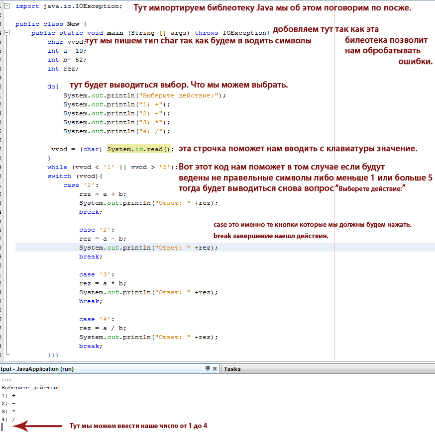 Для начала (Для удобства) код пишем в НетБинсе (так как можно стразу исправить все ошибки).