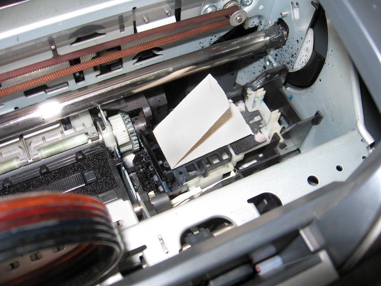 3. Отодвигаем каретку и кладем на капу нашу пластину с загнутыми краями.